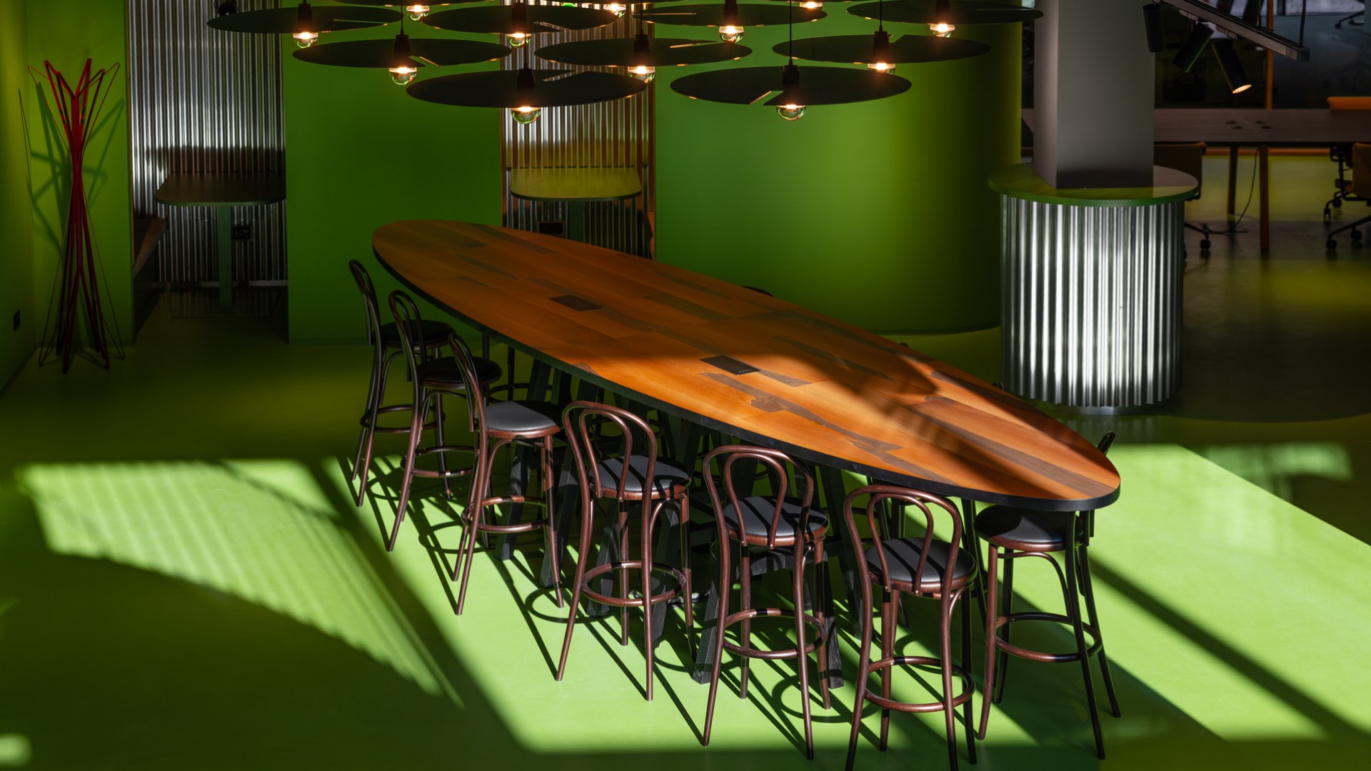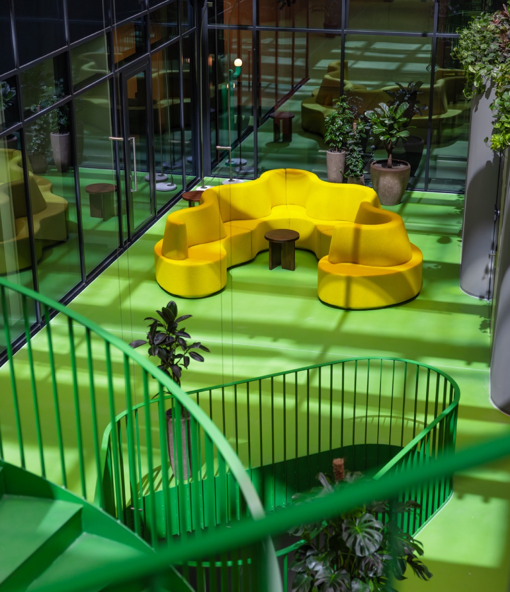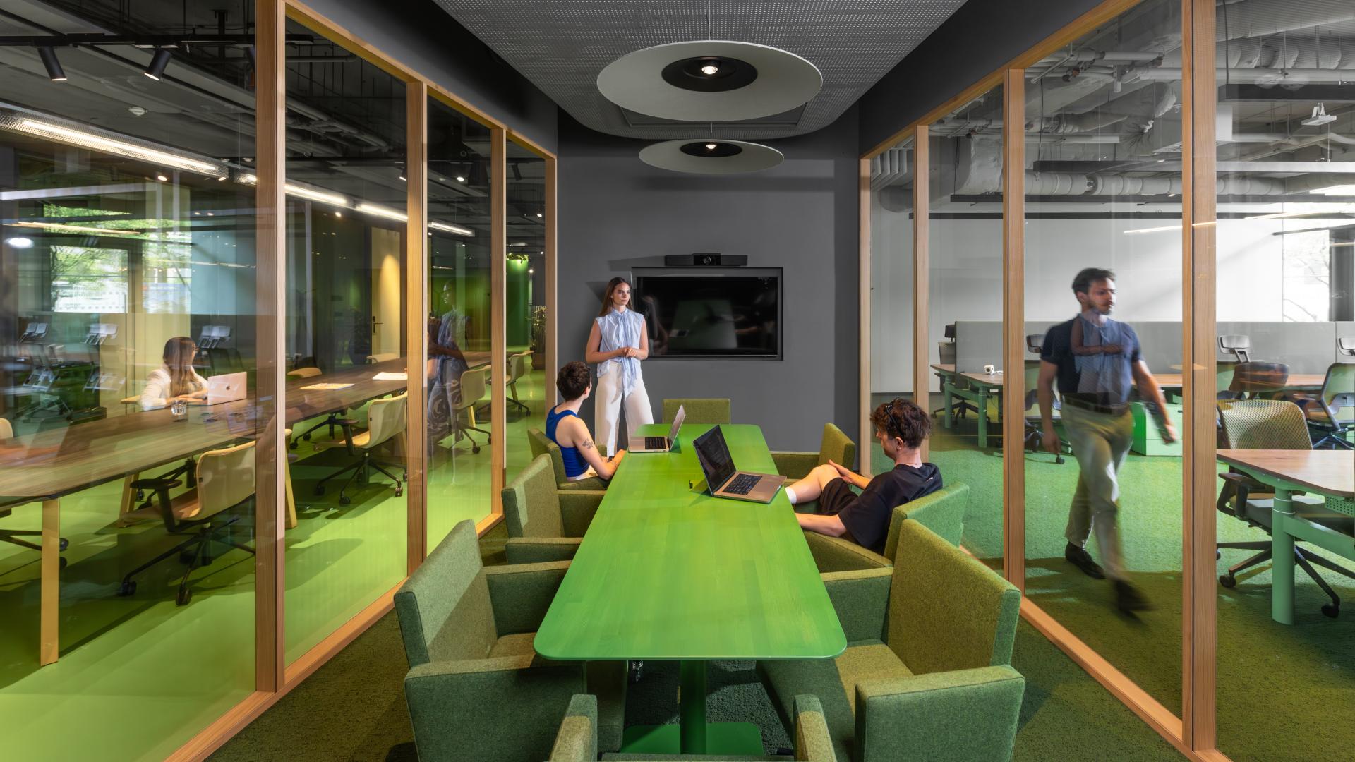 Zelený je uzavřený eventový prostor o rozloze 118 m², ideální pro konference, školení nebo akce s důrazem na klid a soukromí. Pojme až 80 osob, nabízí flexibilní uspořádání a špičkovou techniku. Jste jen pár kroků od relax zóny a podcastového studia, které můžete využít třeba pro stream nebo rozhovor přímo během akce.