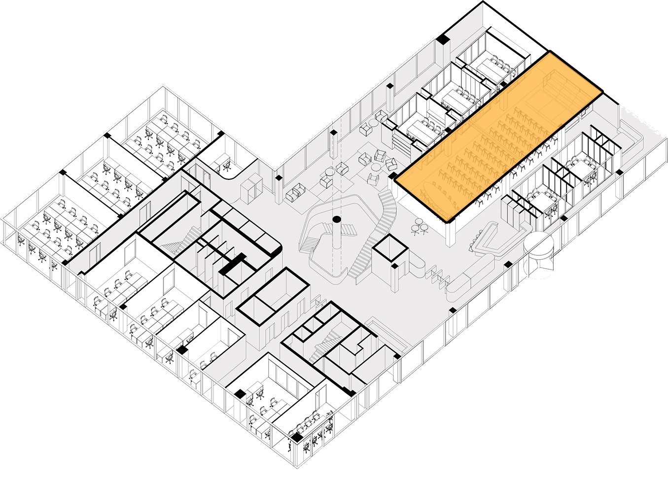 Žlutý je světlý, otevřený prostor o rozloze 128 m², ideální pro akce s kapacitou až 100 osob – s přímým napojením na kavárnu i komunitu Clubca. Prostor lze snadno oddělit závěsy, využít vyvýšené pódium a přizpůsobit uspořádání přesně podle typu akce. K dispozici máte špičkové technické vybavení i vstup na zahrádku – ideální pro pauzy nebo neformální setkání mezi bloky programu.